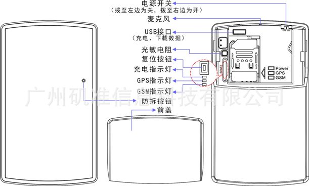 A、掀開GPS定位設備的蓋板,將SIM卡正確插入卡槽。